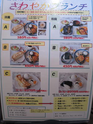 お店の前にも写真こそありませんがモーニングの内容表示があります。