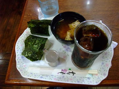 | ドリンク+70円のおにぎりセットです。 ちなみにアイスコーヒーは380円です。 |