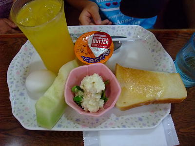 | バターロールが売り切れてしまいましたので代わりにトーストになったものです。 ハニーロースとセットのアイスクリームがゼリーと卵になったようなものです。 |