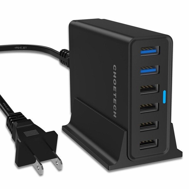 自分のスマホがQC2.0対応だったので対応していて、スマホ3人分、タブレット2個、合計5個は充電できること