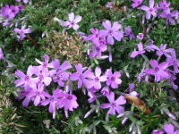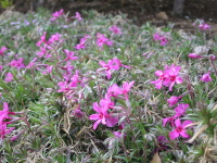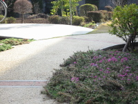 | 門から玄関までのアプローチの左右にシバザクラを植えてあります。 | |