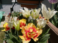 | 今年のチューリップはこんなの買いました。 いまいちきれいに咲いてくれませんでしたが個々にみてみるとそれなりに咲いてくれました。 |