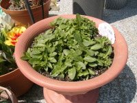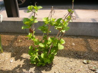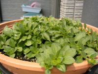 | サフィニアはだいぶ伸びました。そろそろ余分なはっぱを摘むべきですね。 | |