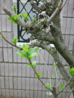 | 子世帯の玄関付近に植えた木に新しい芽は出てきました。 | |