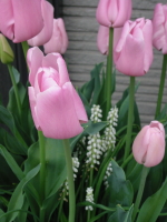 | チューリップに隙間にムスカリを植えてみました。 | |