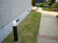 | 夏の間に芝生が伸びでそれを刈り込んだらこんなふうにまだらになってしまいました。 伸びた芝生の陰になった部分は十分に日が当たらないので枯れたような色になってその後に刈り込むとまだらになるみたい。 普段からしっかり刈り込まないとこうなるという悪い見本です。 |