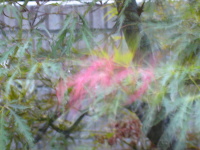 | シダレモミジに赤い葉が現れました。風で葉が揺れていたのでちょっと幻想的な画像になりました。 |