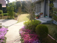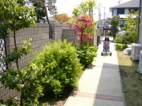 | 子世帯のアプローチです。 だいぶ緑が多くなり、にぎやかになりました。 |