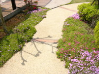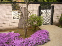 | こちらは親世帯のアプローチ。 芝桜のピークは過ぎてしまったようです。 |