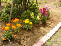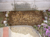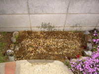 | 子世帯の玄関前におしろい花を植えてあるのですがまだ芽も出しません。 今年はダメか?? |