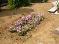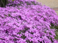 | 子世帯の玄関前は日当たりがあまりよくないのですがだいぶ芝桜は咲き始めました。 | |