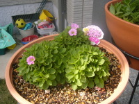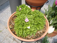| サフィニアは葉っぱが広がる前に咲き始めました。 去年はだいぶ葉が広がったのですが何が失敗したのやら。 原因不明です。 |