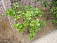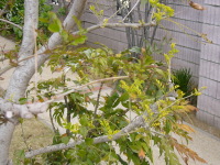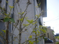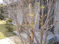 | こちらは柿。だいぶ葉っぱをつけました。 |