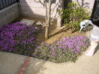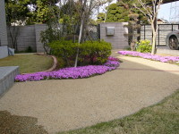 | 親世帯のアプローチは日当たりがいいので芝桜はもう満開です。格好いいです♪ | |