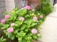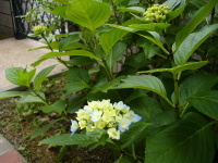 青いアジサイはちょっと日差しが弱いところなのでちょっと遅いかも。