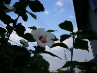 ムクゲは木の下のほうから花が咲くのですがだいぶ上の花が咲くようになりました。