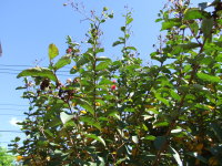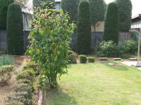 | 海外出張に行っている間に隣に住む植木屋さんに刈られてしまいました。 左はムクゲ。 |