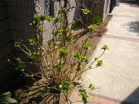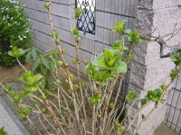 | アジサイは先のほうだけ葉が出揃ってきました。 | |