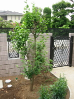 | 子世帯の入り口にあるムクゲがだいぶ葉が多くなりました。 | |