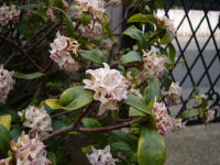 | ジンチョウゲが咲き始めて強烈なにおいを発しています。 | |