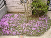 | 子世帯前の芝桜は日当たりが良くないのでまだまだですね。 | |