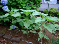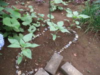 | オシロイバナはもう少し間引こうと思っているうちに大きくなりすぎて間引く気がなくなりました。 |
