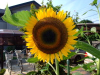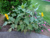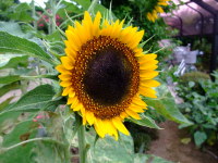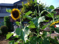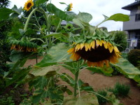大きいひまわりは花が重すぎて垂れ始めるものも出始めました。